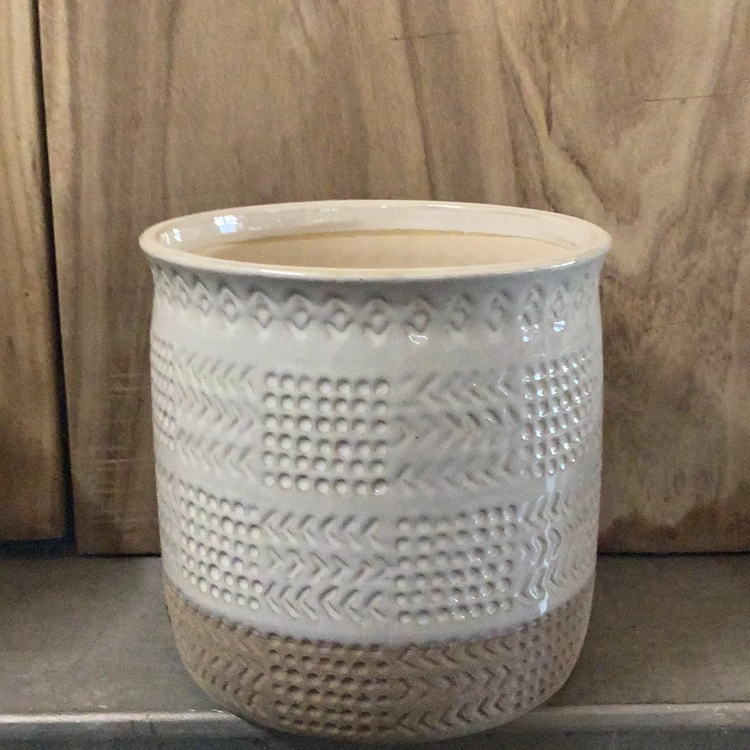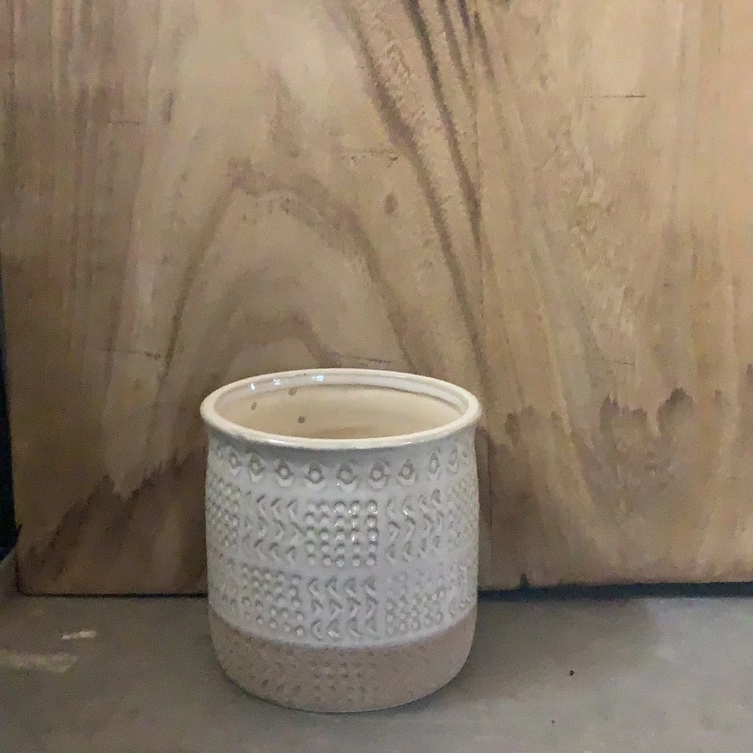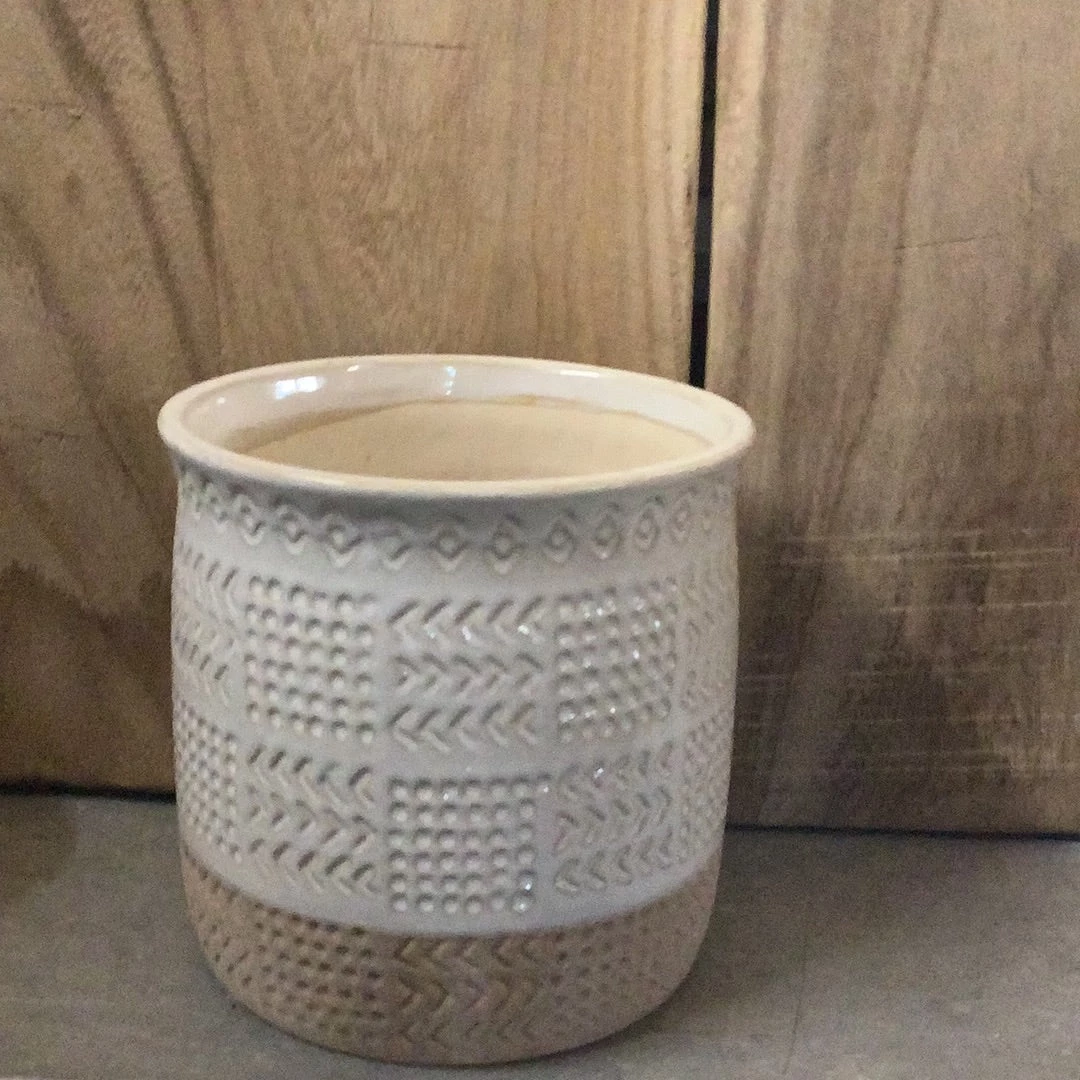 Petals And Blooms Decor Beige Pot With Lower 1/2 Sandy, Dots And Arrow Design Everyday Decor