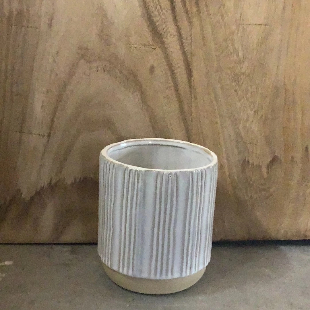 Petals And Blooms Decor Medium Beige Pot With Downward Line Design
