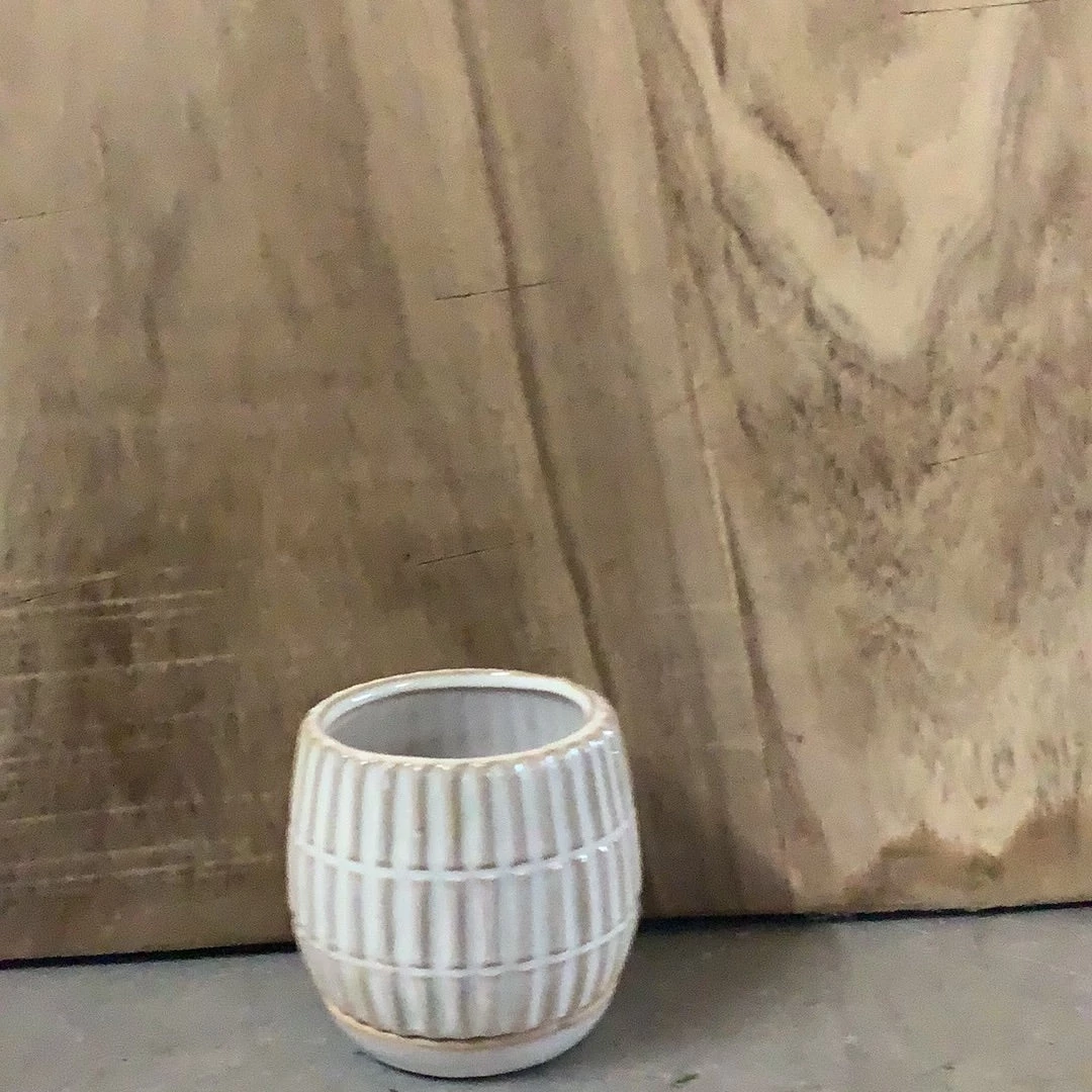 Petals And Blooms Decor Small Cream Lined Pot W/ Saucer