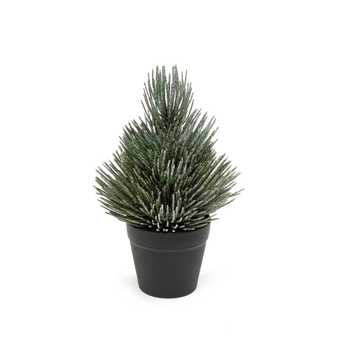 FROSTED PINE TREE IN BLACK POT WITH MICA SMALL 5″X8″
