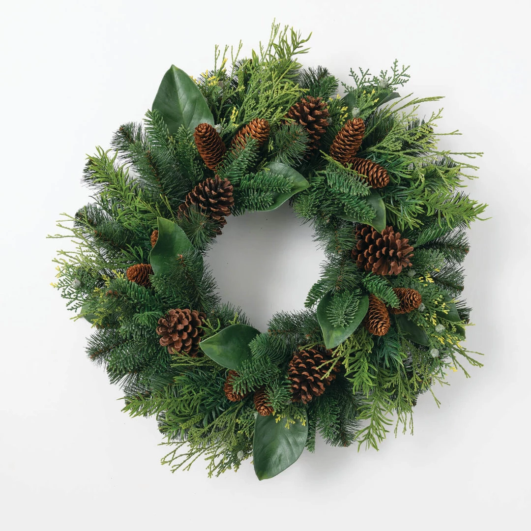 Thick and bountiful, this holiday greenery will really add mystique to your Christmas display. So full and plump with foliage and pine cones, this Australian pine wreath is one of our favorite wreaths we have in the barn!