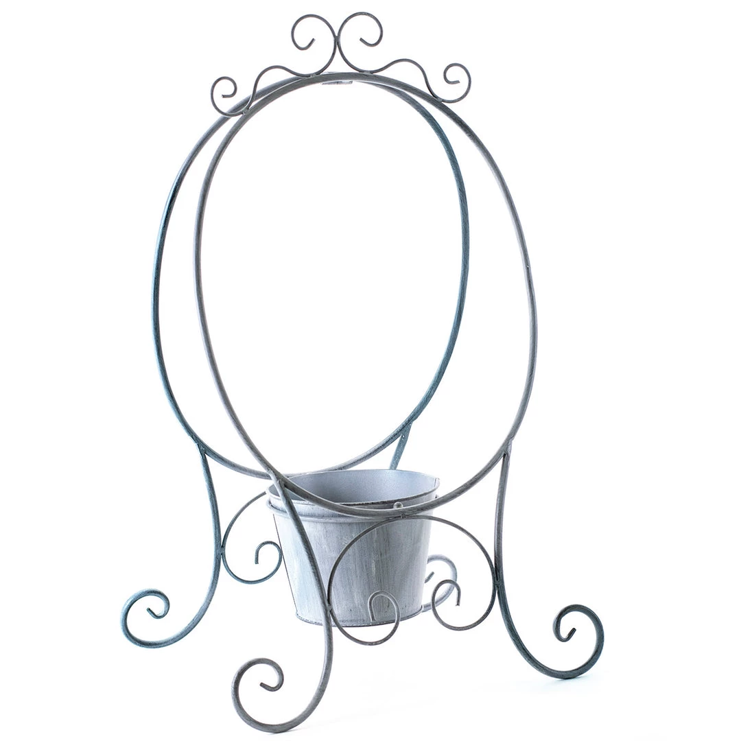 Petals And Blooms Home Decor Blue Swirly Metal Bucket Planter Spring Decor