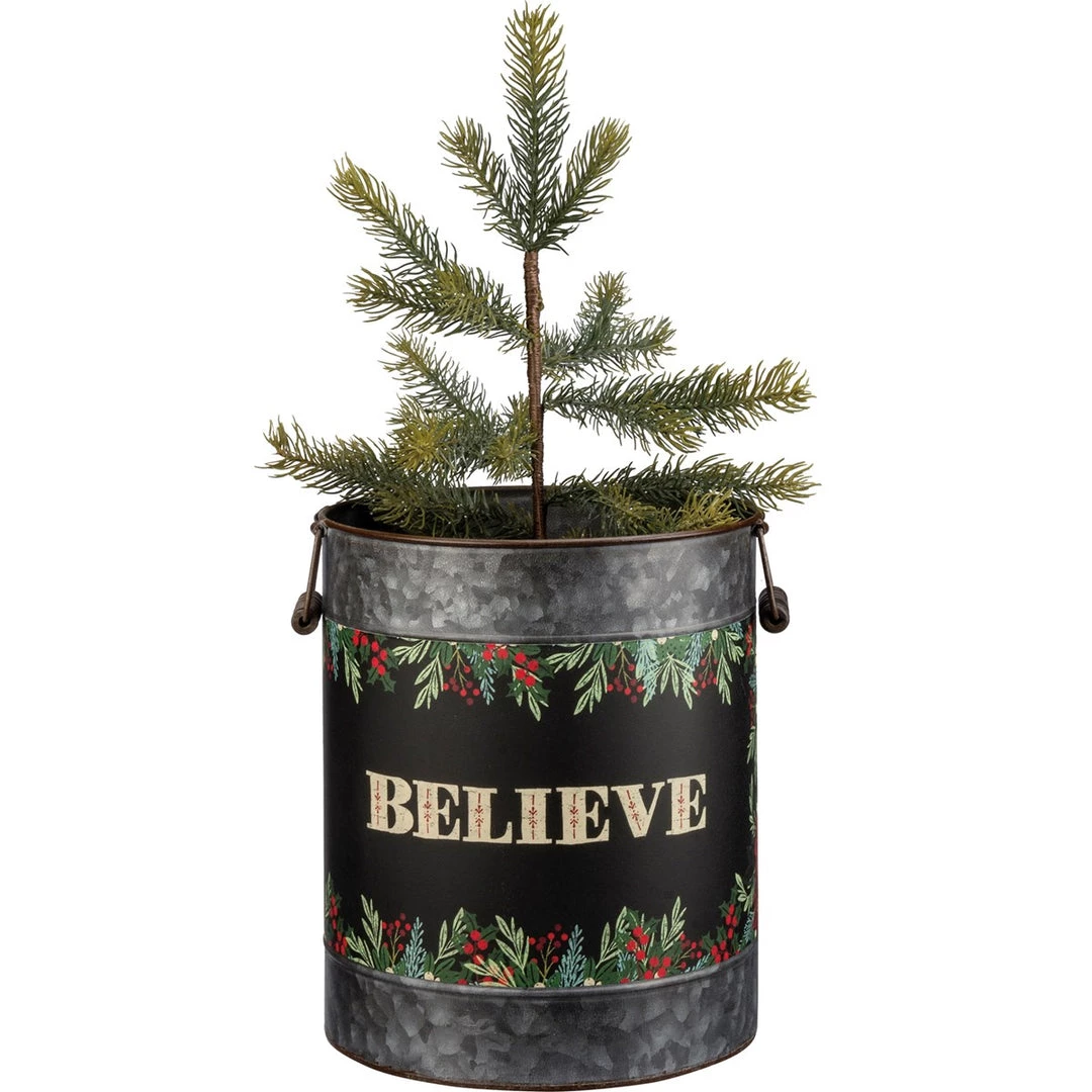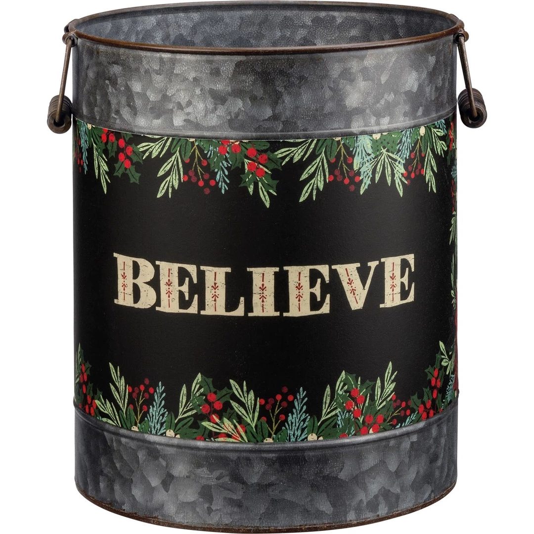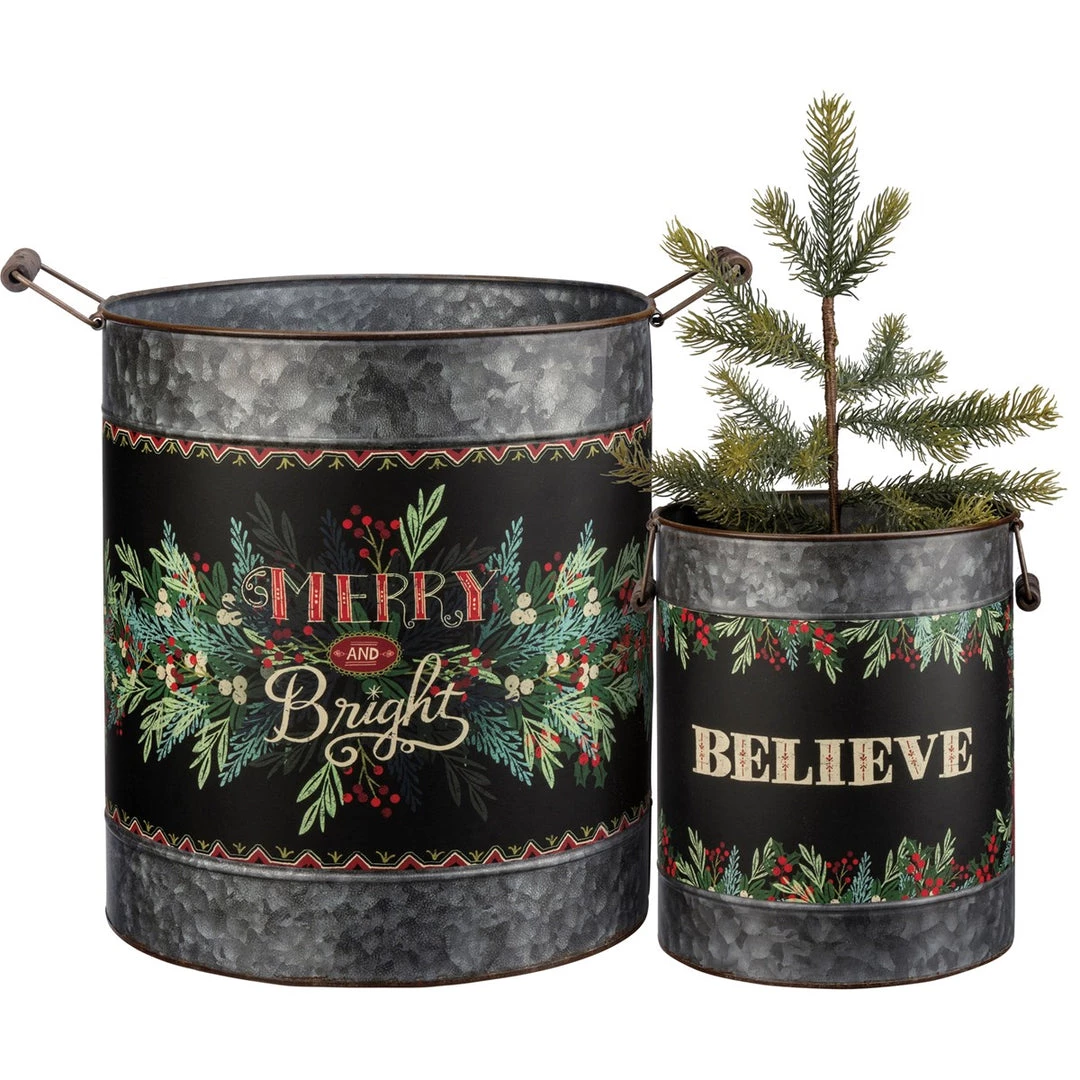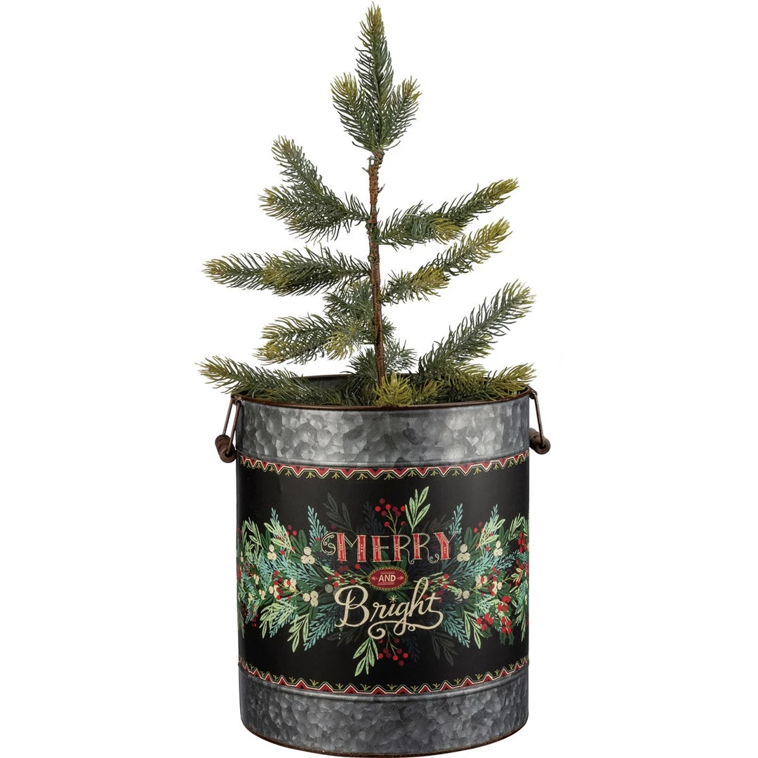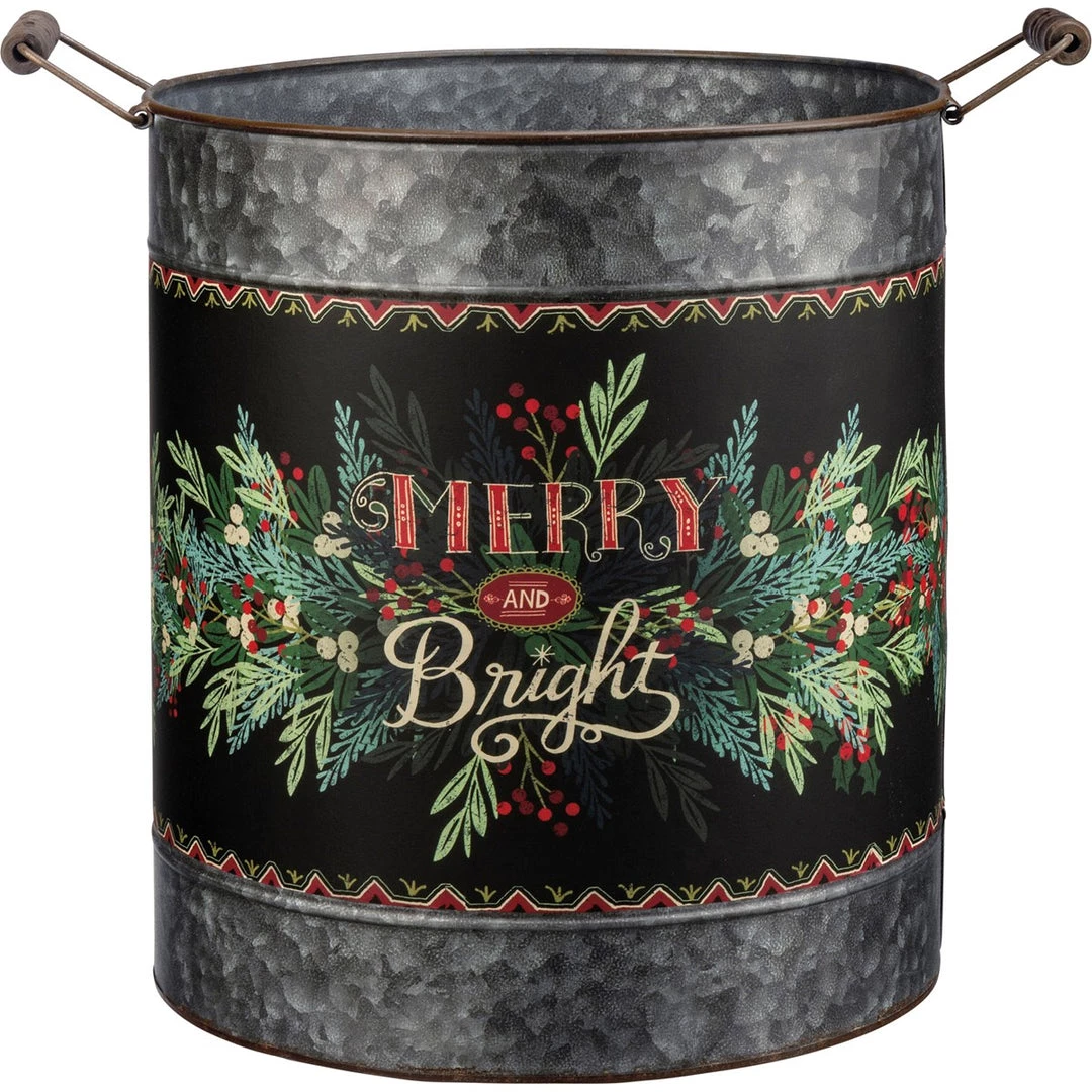 Large bucket features “Merry & Bright” sentiment!