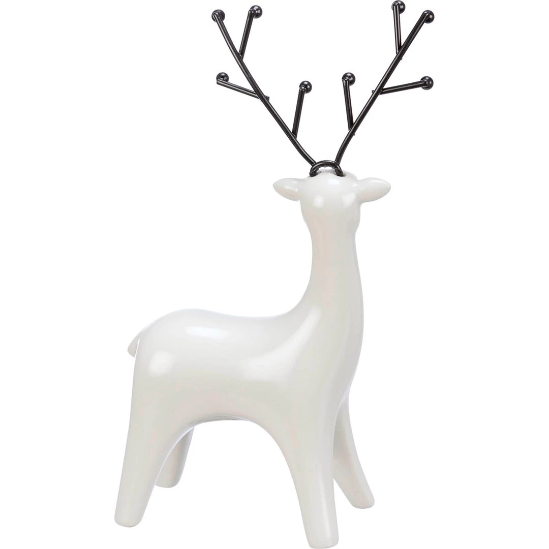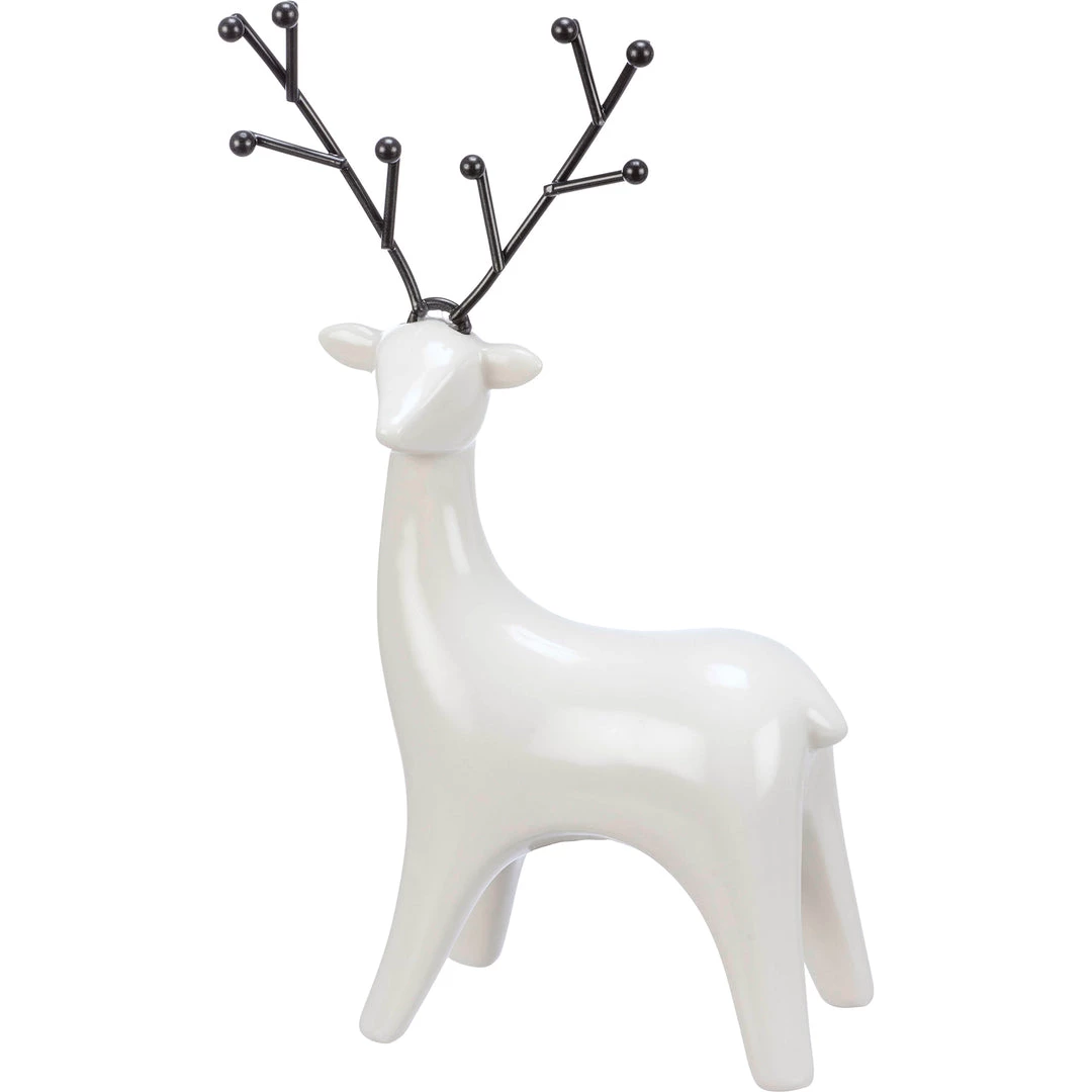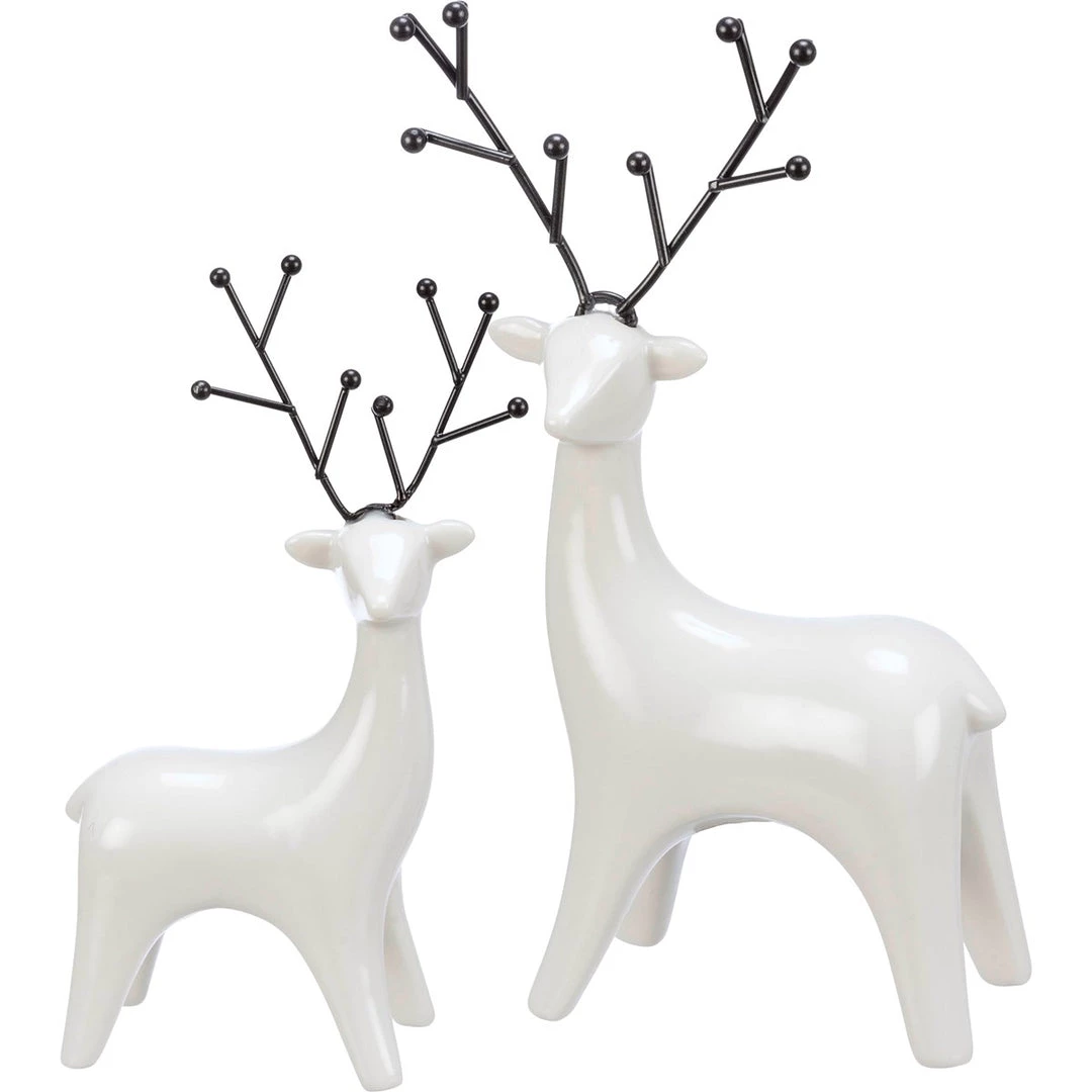 These stunning ceramic deer figurines featuring a glossy white glaze with black metal antler details. Pairs perfectly with other Christmas ceramic pieces for a charming holiday display.
