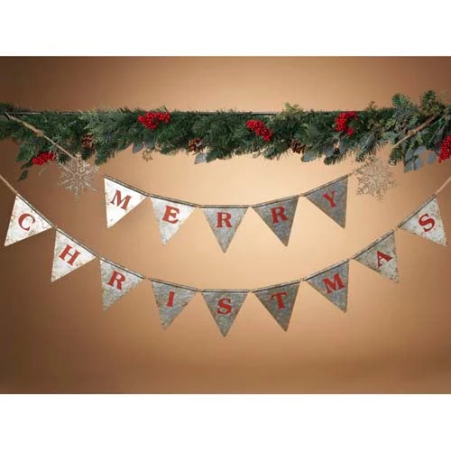 Choose both or just one of this festive “Merry” & “Christmas” metal banner.