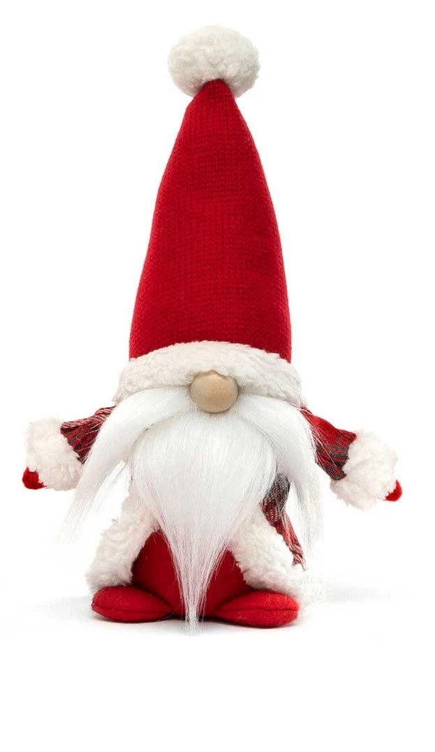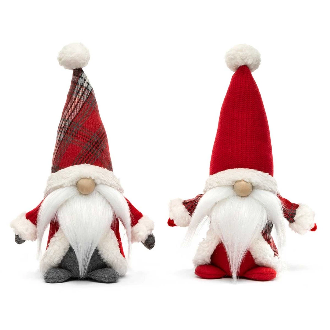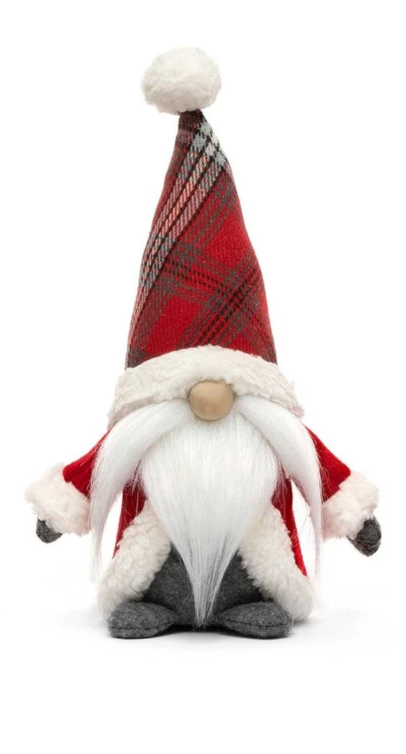 SEASON GREETINGS GNOME RED/BLACK PLAID WITH WIRED HAT, POM-POM, WOOD NOSE, WHITE MUSTACHE/BEARD, ARMS AND FEET 2 ASSORTED SMALL