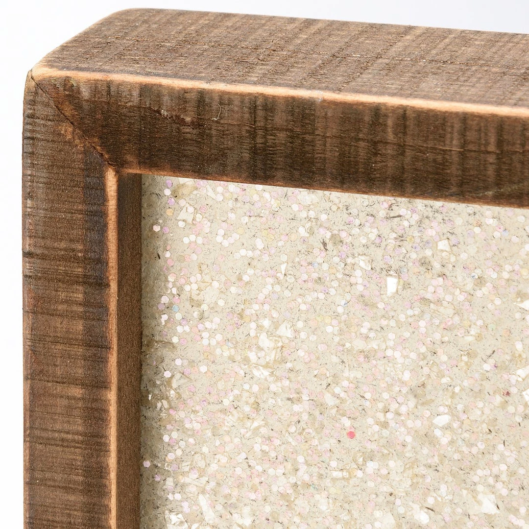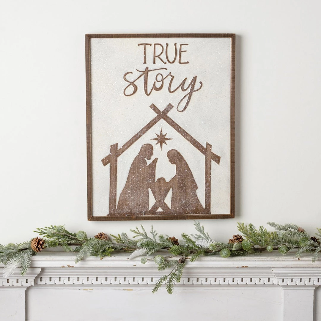 An inset wooden box sign featuring an embossed “True Story” sentiment and nativity scene design with an all-over mica coating for a snowy effect. Our True Story inset box sign is easy to hang or can free-stand alone.