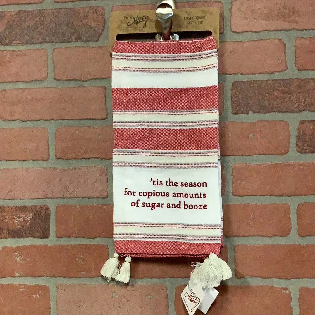 A cotton kitchen towel featuring a holiday-inspired color palette!