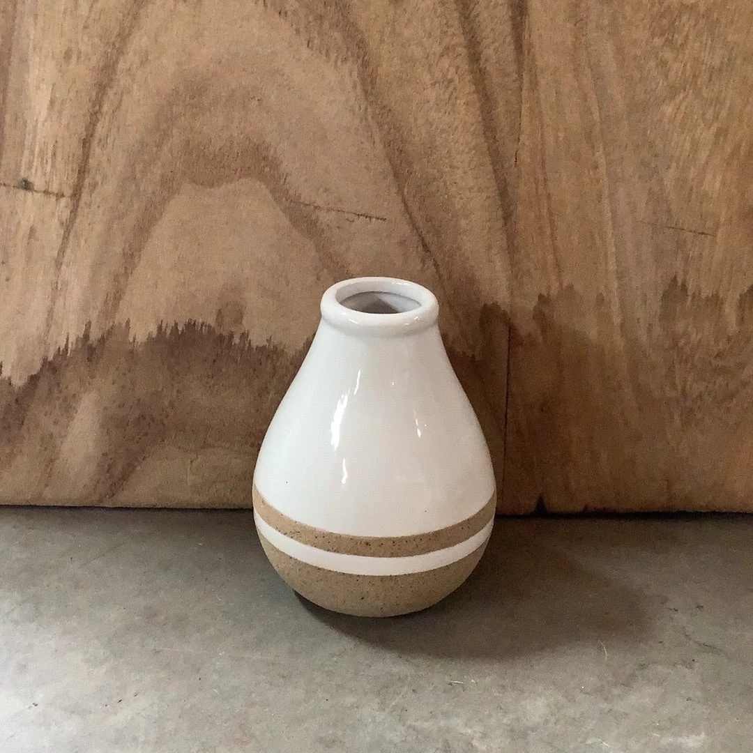 WHITE W/TAN STRIPES CERAMIC JUGS & VASES (5 styles available)