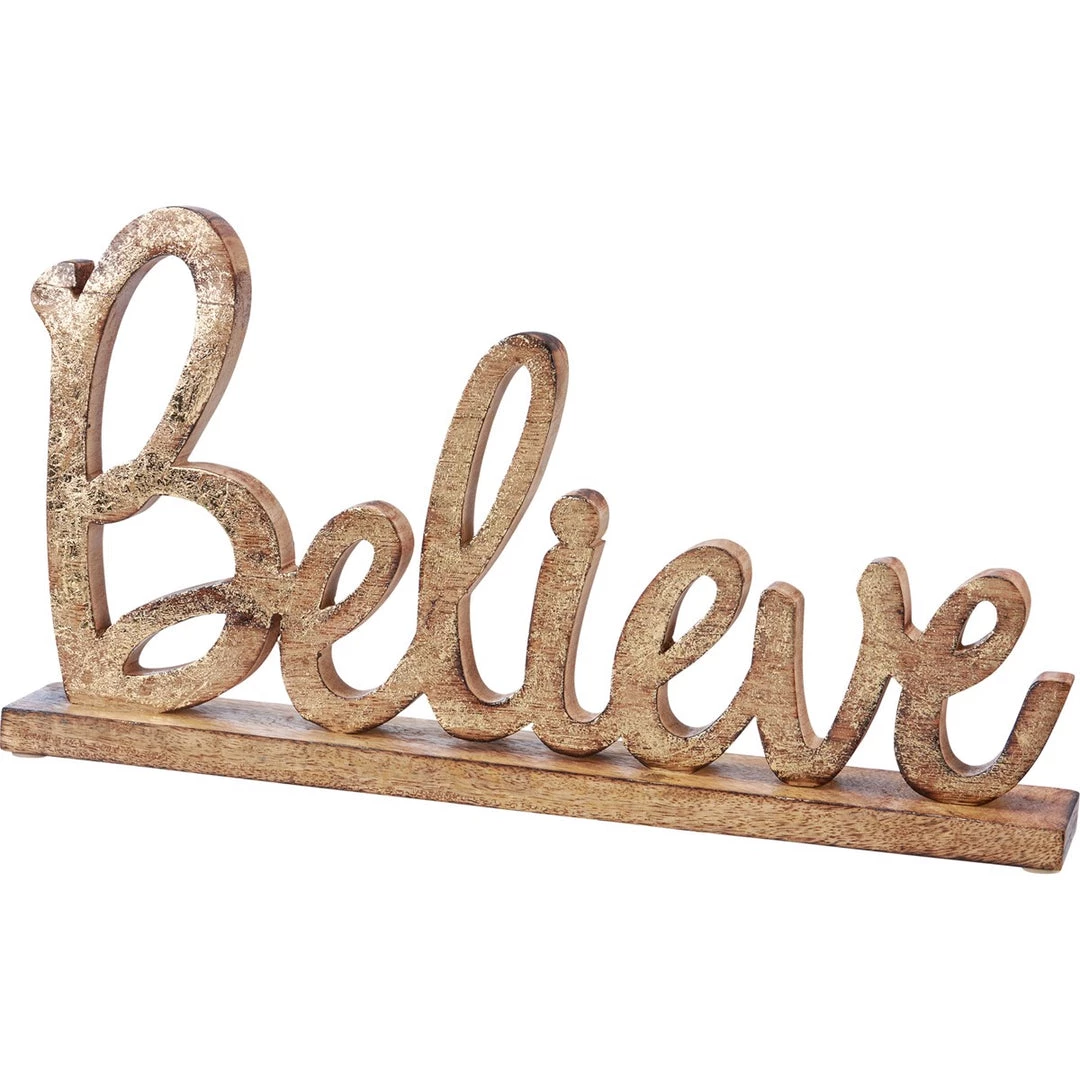 A bohemian style wooden sitter displaying cutout of “Believe” sentiment. Believe sitter features natural wood with gold leaf accent for added interest. Free-stands alone on flat surface!