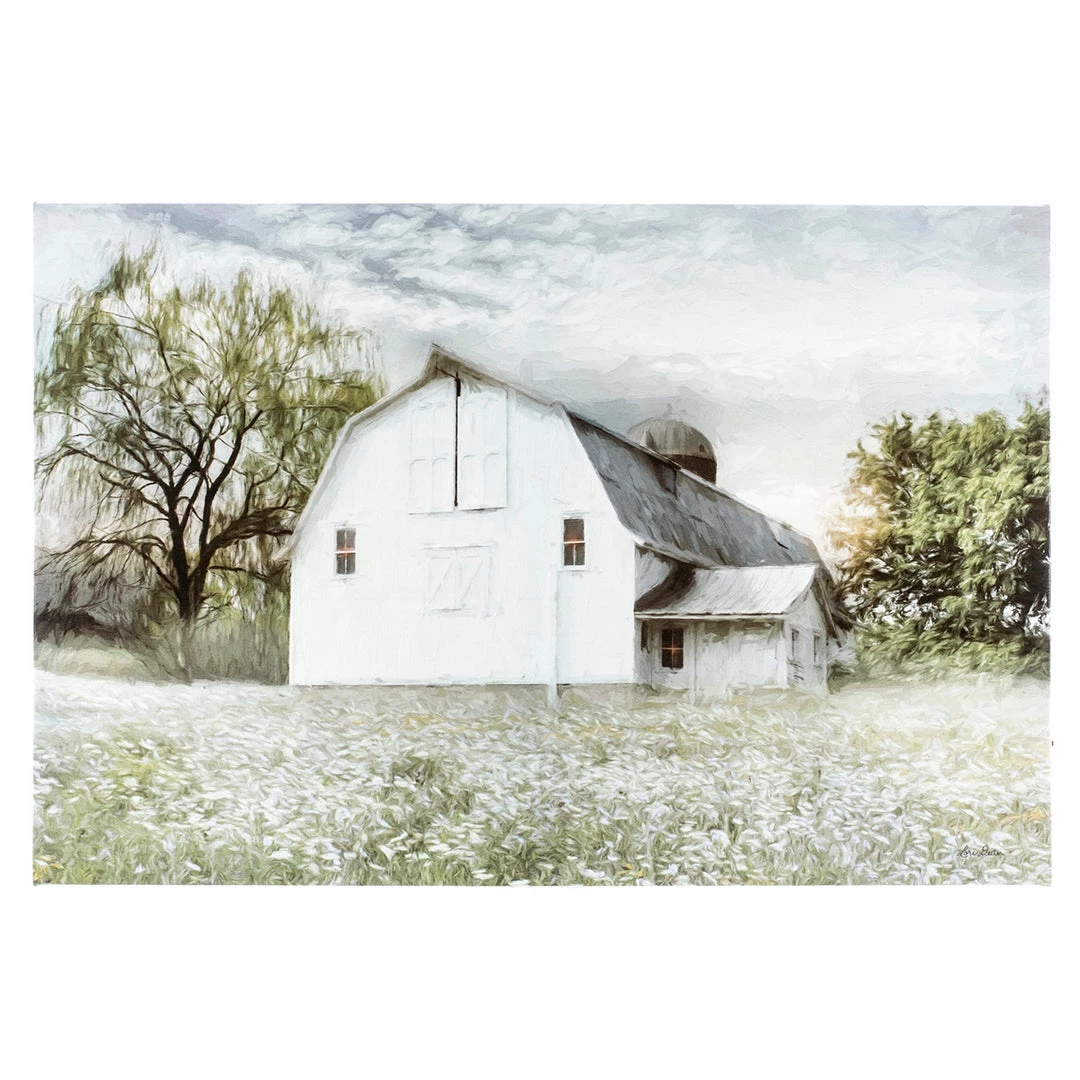 Petals And Blooms Home Decor Light Up White Barn In Field Wall Art Signs + Wall Decor