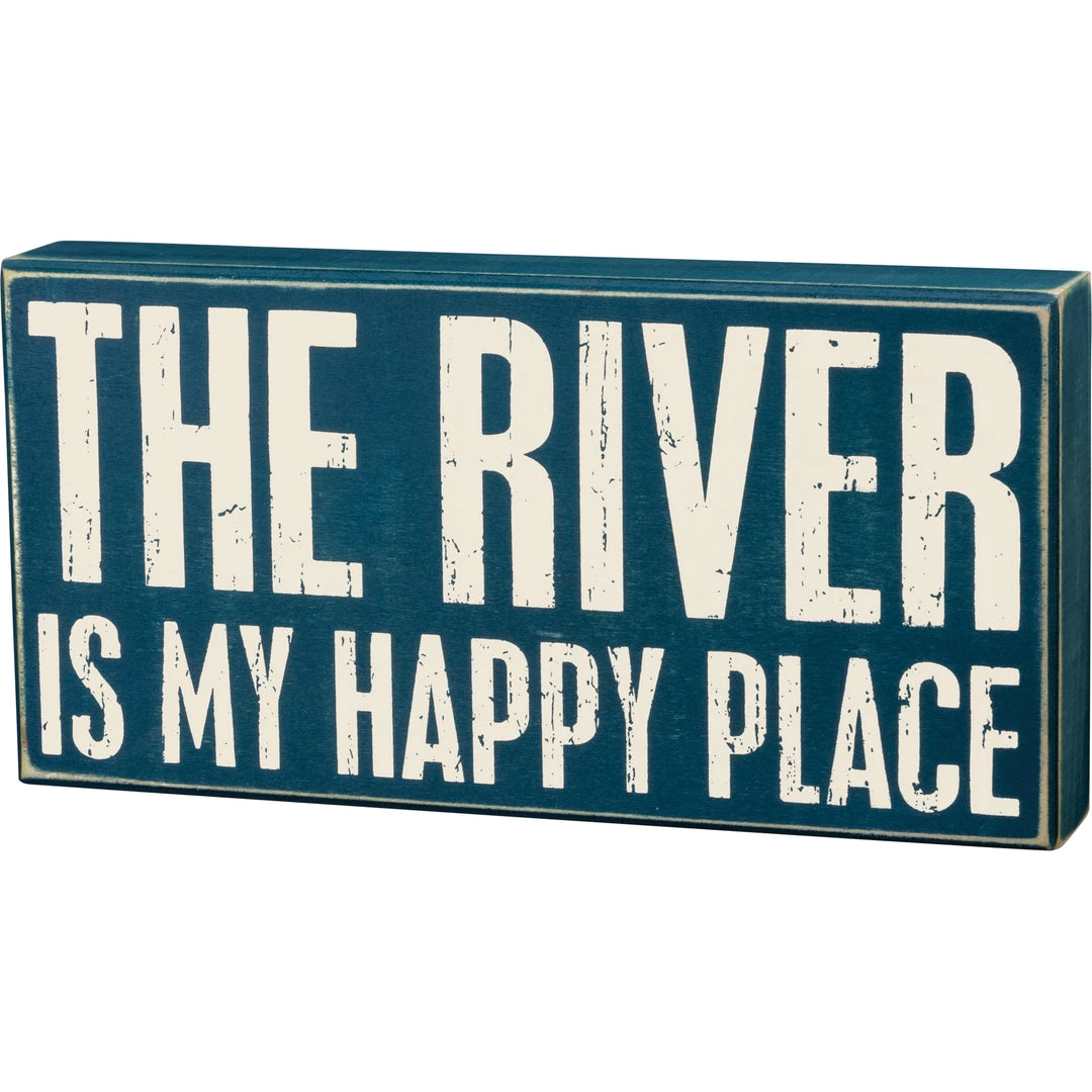 A wooden box sign featuring a distressed “The River Is My Happy Place” sentiment that complements well with existing decor. Easy to hang or can free-stand alone.