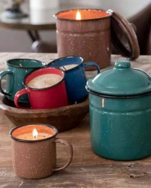 Vintage Enamelware Mini Mug Candle is poured with premium 100% American Soybean Wax , these delightful candles feature food-safe enamelware that can be re-used after the candle is gone! Clean burning, triple-scented and deliciously fragrant, these vibrantly colored Mini Mug Candles are the perfect accent to your holiday or everyday décor. Makes a great gift!
