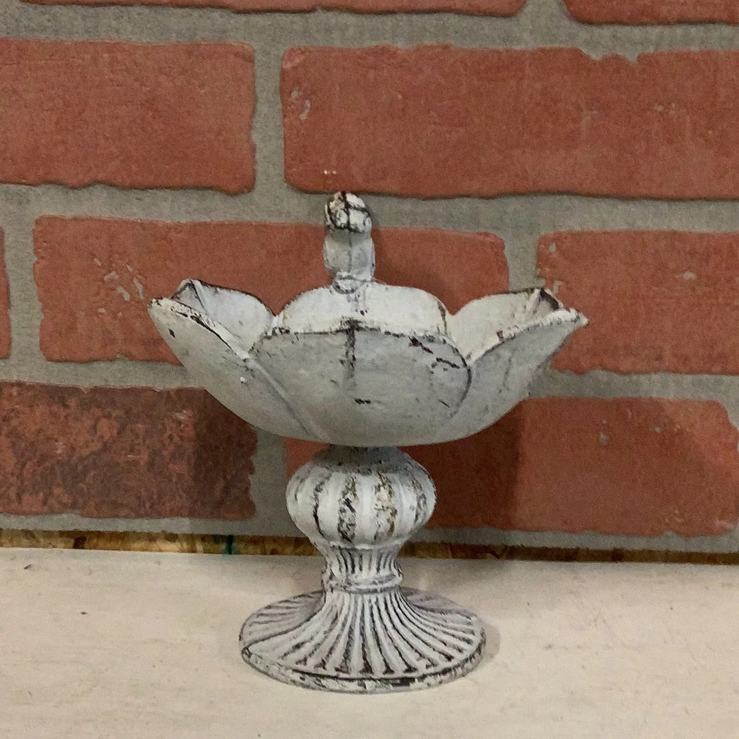 Petals And Blooms Home Decor Spring Decor Cast Iron Bird Feeder Pedestal | White Washed