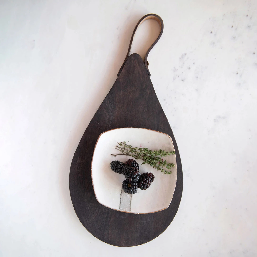 Petals And Blooms Home Decor Long Leather Handle Serving Board Set