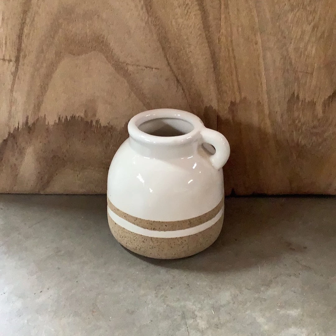 WHITE W/TAN STRIPES CERAMIC JUGS & VASES (5 styles available)