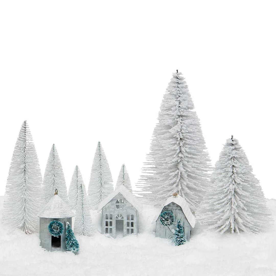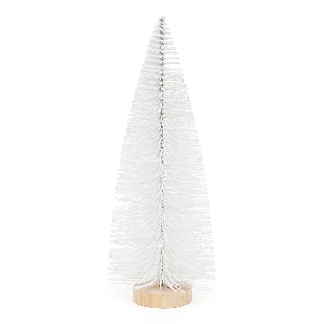 BRISTLE TREE WHITE WITH SNOWY WHITE TIPS, GLITTER AND WHITE WOOD BASE