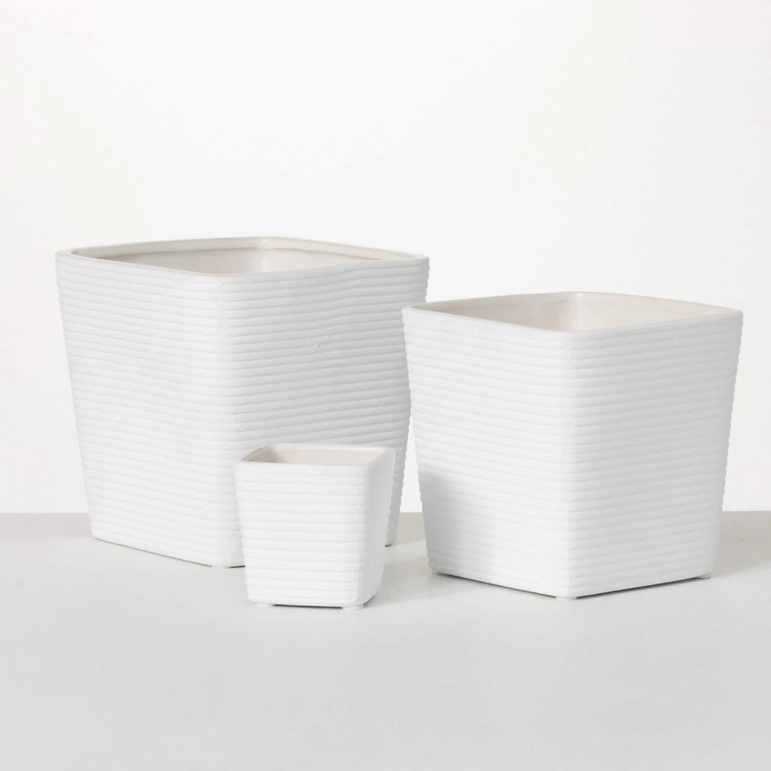 It’s hip to be square! Our square planters feature a subtle wavy outer pattern and rounded corners that lend a modern look to any space. The white finish gives you a striking yet versatile foundation for any color palette.