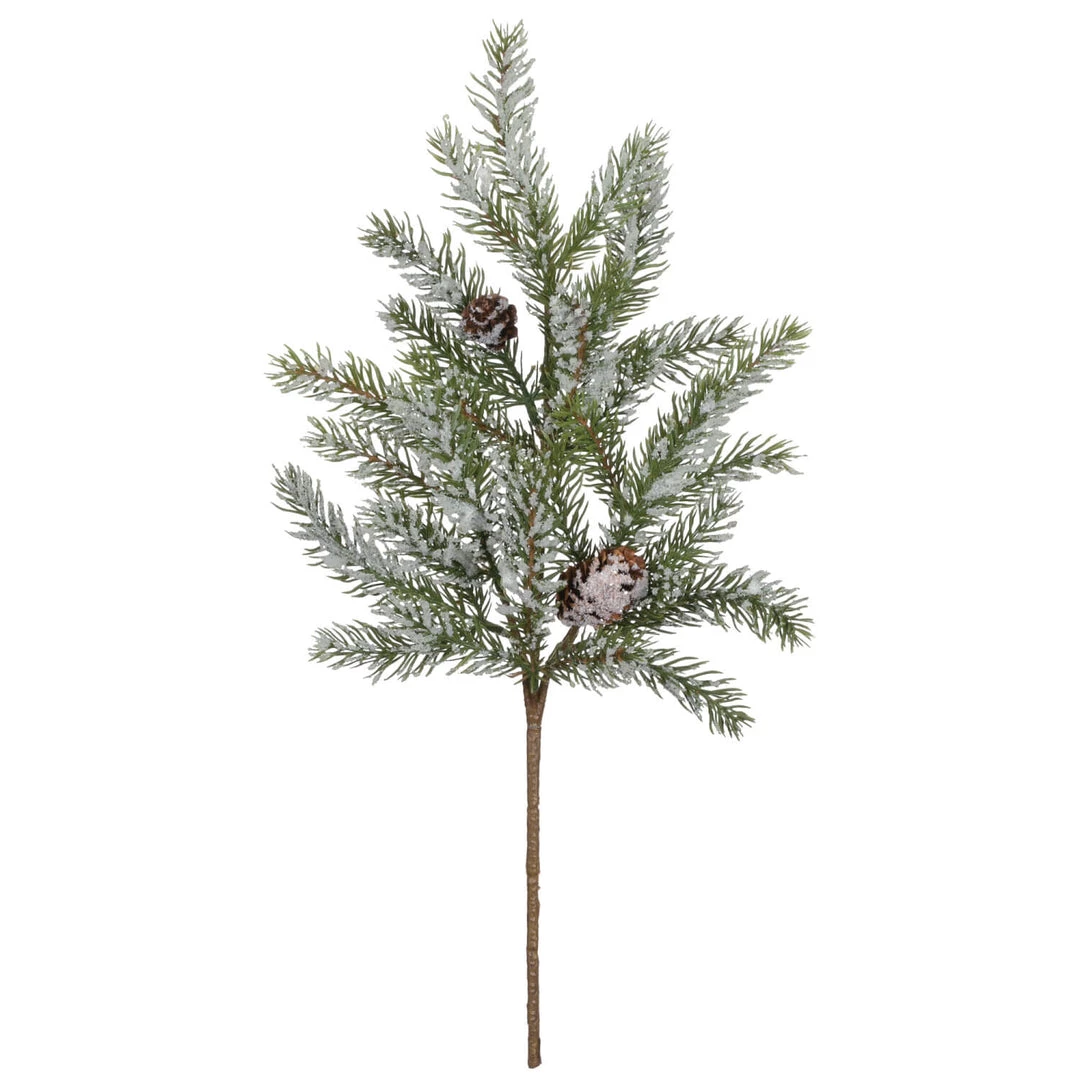 Spruce up your next creation with this realistic pick. This stem has a natural and freshly trimmed look, with pinecones and a light dusting of snow.