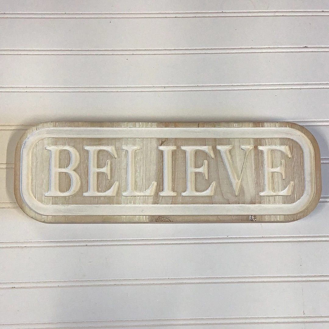 Petals And Blooms Home Decor White Washed Believe Block Sign Signs + Wall Decor