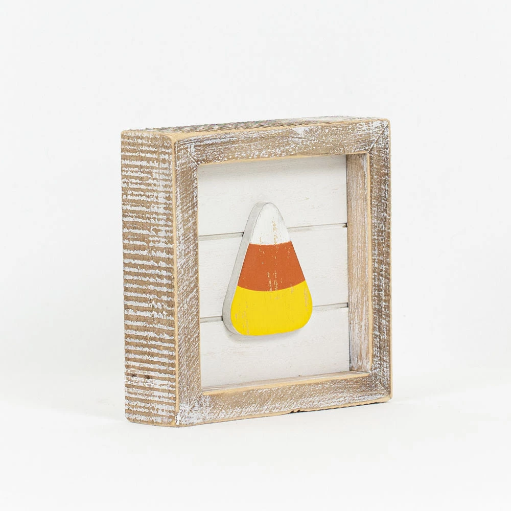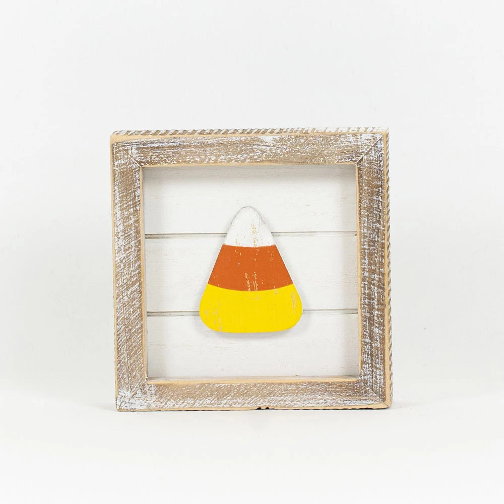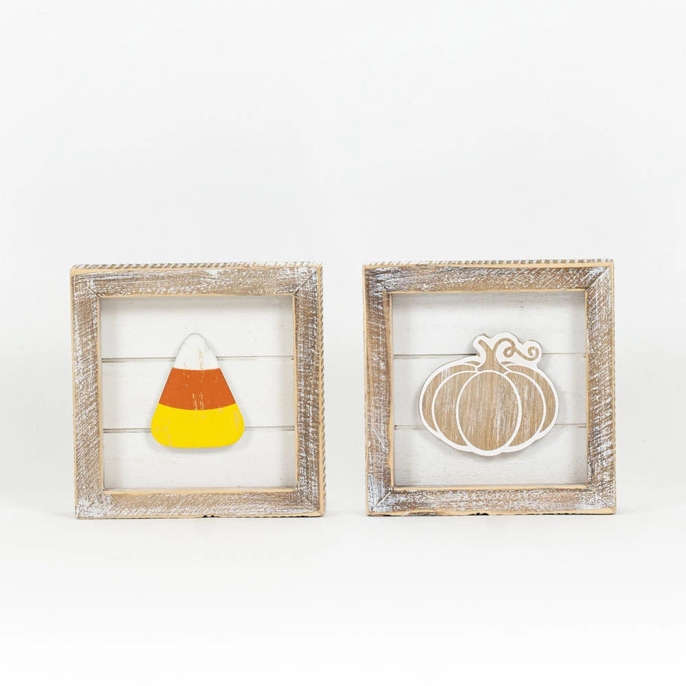 Petals And Blooms Home Decor Wood Framed Candy Corn & Pumpkin Sign | Double Sided
